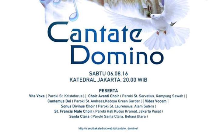 Konser bertajuk Cantate Domino atau Bernyanyi Bagi Allah itu bakal diadakan di Gereja Katedral Jakarta pada Sabtu, 6 Agustus, pukul 20:00 – 21.30 WIB.