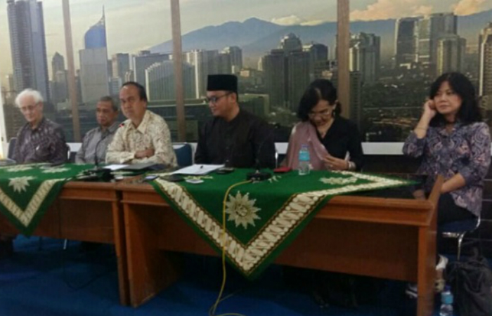 Tim Evaluasi Penanganan Kasus Terorisme yang diwakili oleh Franz Magnis Suseno, Busyro Muqoddas, Hafid Abbas, Dahnil Anzar, Magdalena Sitorus, dan Siane Indriani dalam konferensi pers di PP Muhammadiyah, 15 Juli 2016 (Sumber: Tempo.co)