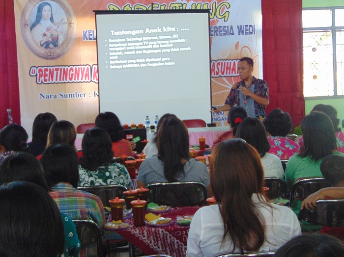Demikian salah satu poin yang disampaikan Pengurus Himpunan Pendidik Anak Usia Dini (HIMPAUDI) Provinsi Jawa Tengah Benyamin Agustinus saat acara parenting yang diadakan Pendidikan Anak Usia Dini (PAUD) Santa Theresia Wedi, Kabupaten Klaten di GOR Desa Gadungan, Kecamatan Wedi, Sabtu, 3 September 2016.