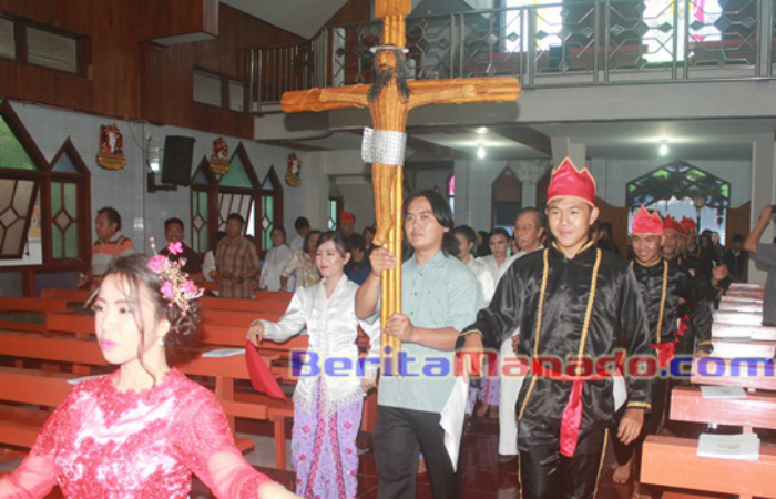 Salib akan dijemput di depan Gedung Manado Post Centre, lalu akan diarak menuju Gereja Yesus Gembala Yang Baik yang berjarak sekitar 200 meter dari tempat itu.