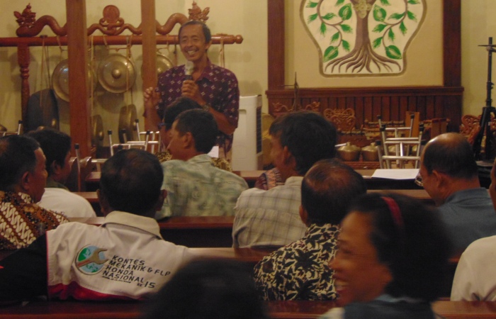 Fasilitator pelatihan ini adalah Yosef Agustinus Sriyono, pranatacara “senior” dari Desa Malangjiwan, Kecamatan Kebonarum.