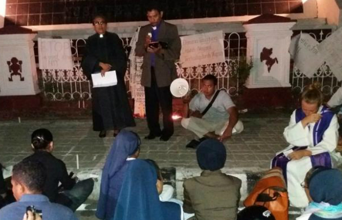 Katoliknews.com – Sejumlah Pendeta, Pastor dan biarawati pada Minggu 23 Oktober 2016 menggelar ibadah bersama puluhan aktivis dan masyarakat di depan Rumah Jabatan Gubernur Nusa Tenggara Timur (NTT) Frans Leburaya untuk mendoakan Tenaga Kerja Indonesia (TKI) asal NTT yang meninggal dunia di luar negeri.