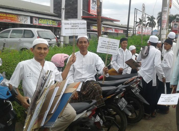 Karena itu mereka menyatakan menolak pembangunan Gereja Santa Clara. Jika tidak diindahkan mereka berjanji akan berdemo terus.