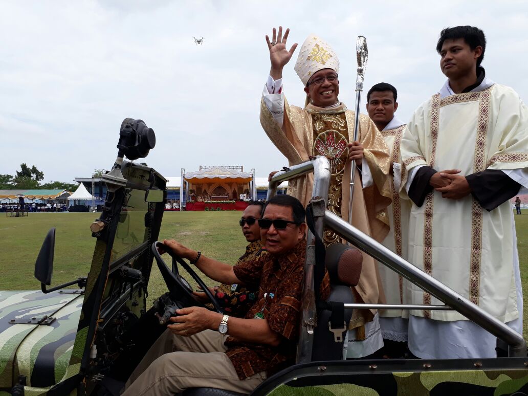Ritual liturgis yang satu ini terbilang unik. Pasalnya, usai komuni kudus, Mgr Sunarko OFM dengan tongkat kegembalaannya mengenderai mobil terbuka, berkeliling di lapangan hijau itu, untuk memberikan berkat episkopalnyta kepada umat Allah yang hadir dalam perayaan.