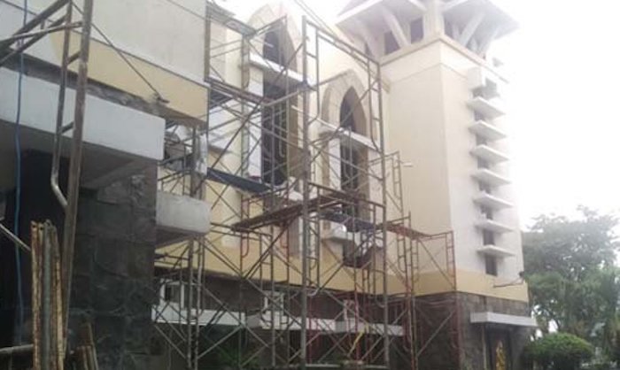 Pantauan Katoliknews.com, Selasa, 15 Mei 2018, di Gereja St Maria Tak Bercela di Ngagel, salah satu lokasi pemboman, tampak para tukang memperbaiki bagian depan gereja itu, yang dihantam bom pada Minggu, 13 Mei lalu.