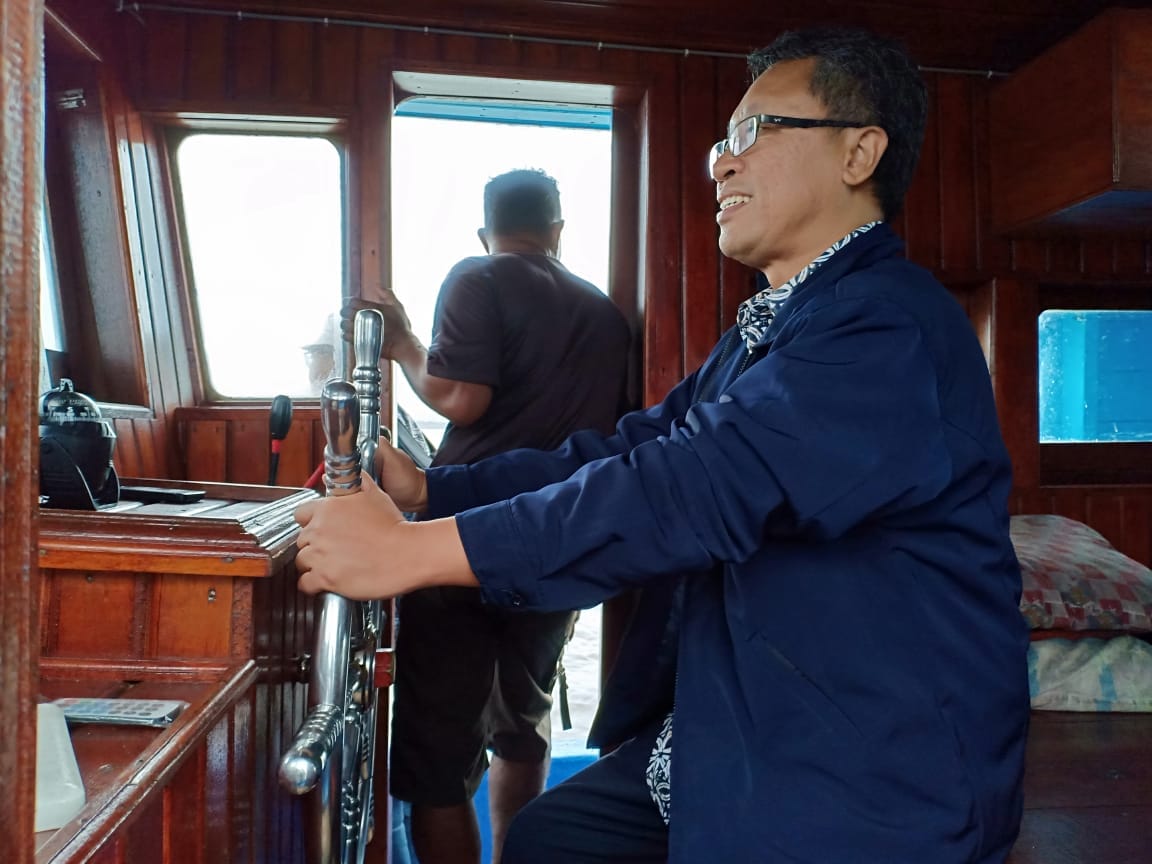 Dalam perjalanan ke Sedanau, Mgr Adrianus OFM terlihat terus memberikan senyum sumringah “Ini musim barat, jadi gelombang akan redah beberapa jam lagi. Jadi jangan takut,” ungkap salah seorang umat yang disapa Basri di pelabuhan Semedang (2/8/2018).