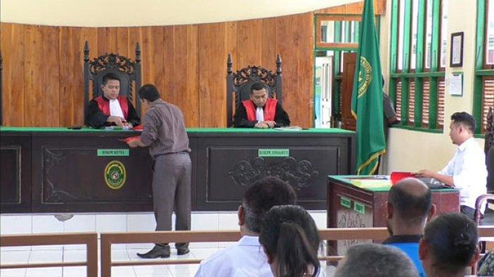 Suasana sidang lanjutan gugatan terhadap tanah Gua Bitauoni dan sekitarnya yang digelar di Pengadilan Negeri Kefamenanu, Senin (9/12/2019). (Sumber foto: Tribunnews.com)