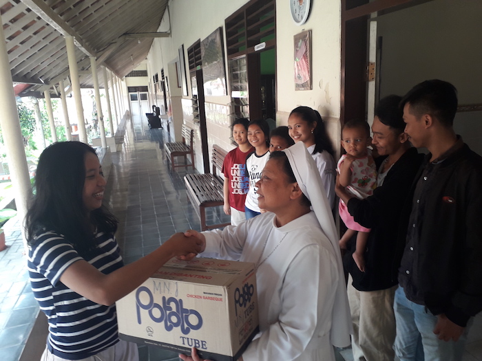 Katoliknews.com – Para mahasiswa dari Program Studi Public Relations ASMI Santa Maria Yogyakarta mendatangi Panti Brayat Pinuji Putri, Boro, Kulon Progo pada pekan lalu untuk menggelar bakti sosial di lembaga yang dikelola para suster Ordo Santo Fransiskus (OSF) itu.