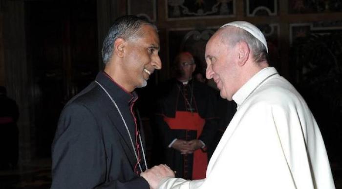 Dalam foto ini, Mgr. Jacob Muricken sedang berjabat tangan dengan Paus Fransiskus. (Foto: Ist)