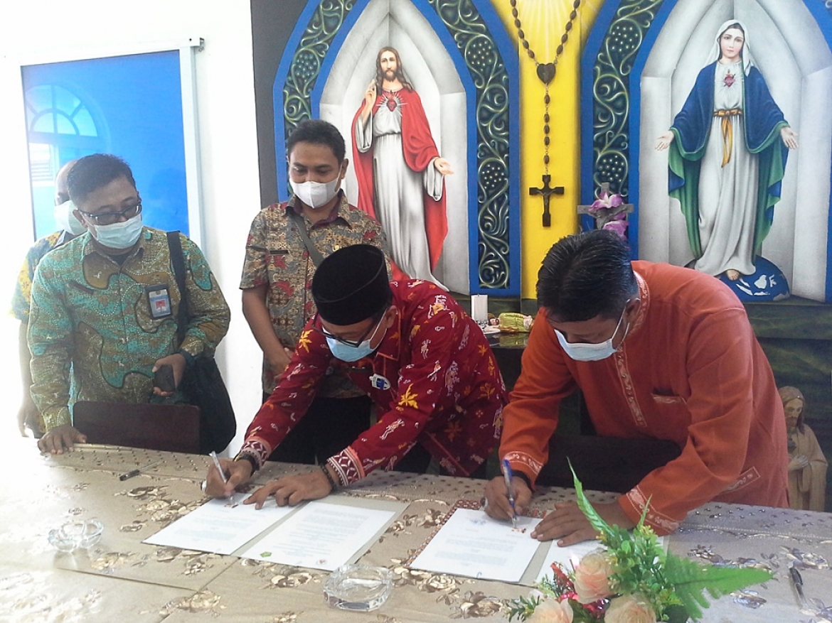 Penandatangan MoU Kemenag Tanjungpinang dan Paroki HSMTB (foto; Kemenag Prov Kepri)