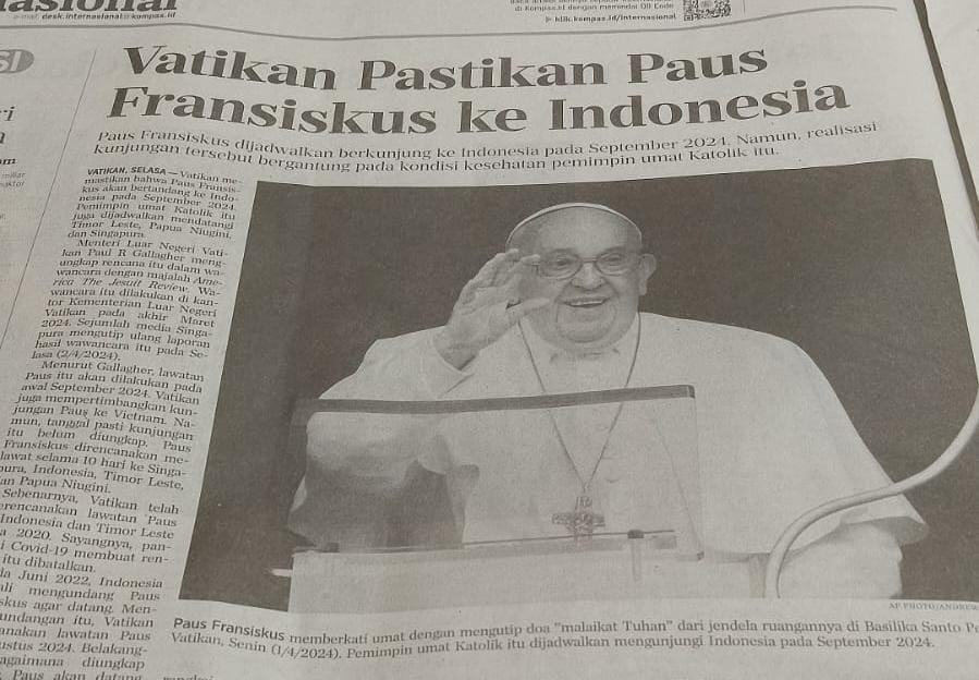 “Berdasarkan surat dari Vatikan yang diterima pemerintah Indonesia, Paus Fransiskus akan hadir pada 3 September 2024,” ujar Menag Yaqut di Rembang, Jawa Tengah, Sabtu, 30 Maret 2024, seperti lansir di situs Kemenag.go.id.
