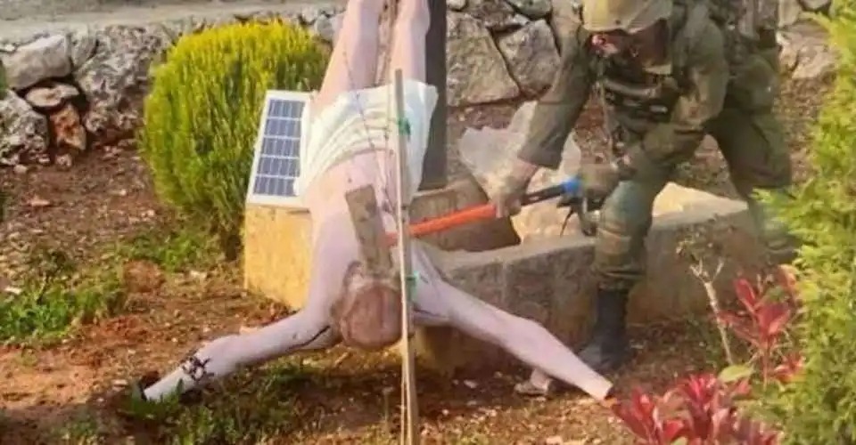 Keputusan ini diambil setelah kecaman luas terhadap foto yang dibagikan secara daring yang menunjukkan seorang tentara Israel menggunakan palu godam untuk memukul kepala patung Yesus yang disalibkan yang telah jatuh dari salib.